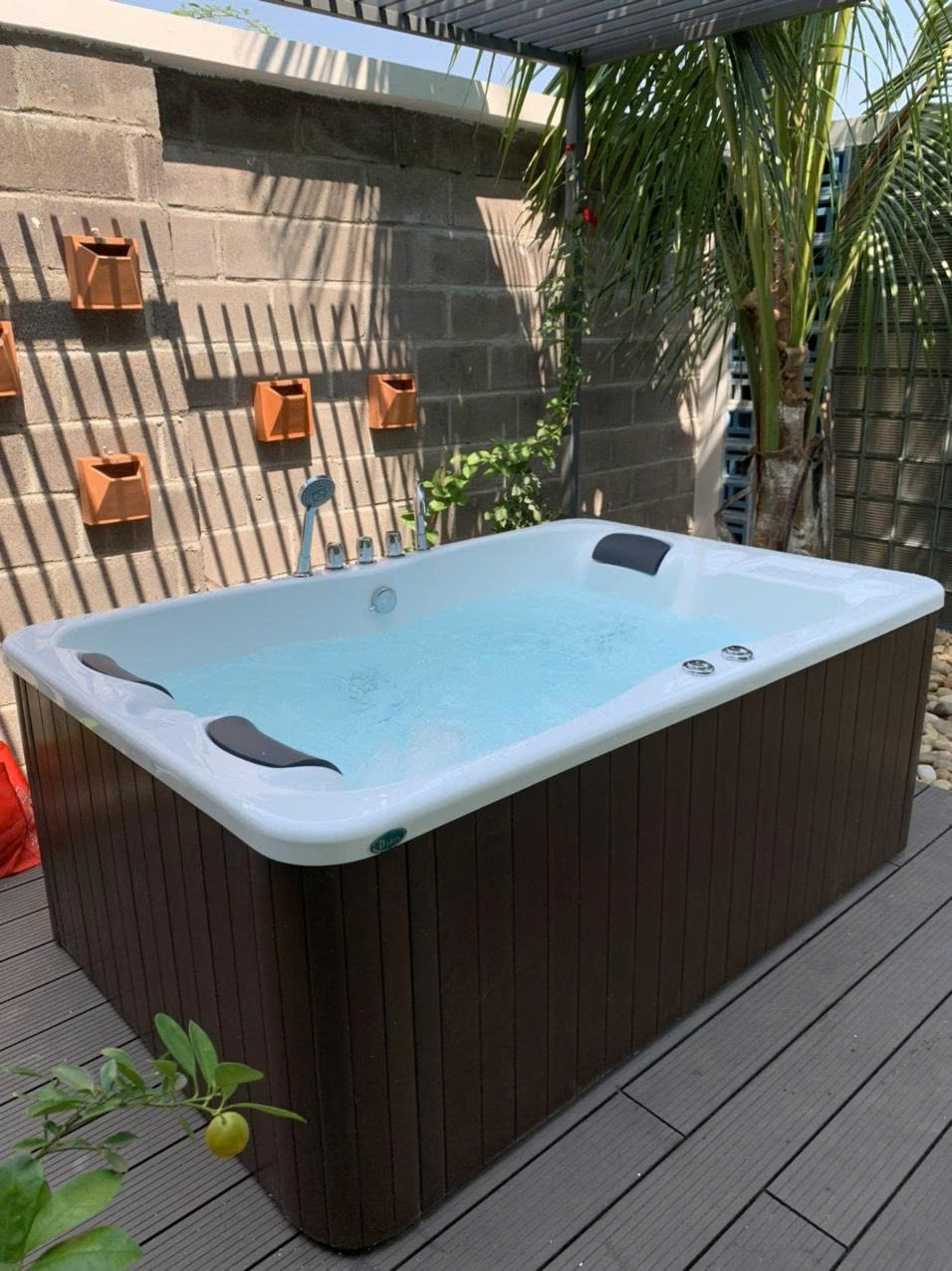 Tuy nhiên, D23G khác biệt bởi thiết kế yếm gỗ với tone nâu trầm bao bọc toàn bộ thân bồn khiến cho chiếc bồn mang nét sang trọng cổ điển nhưng lại rất gần gũi và thân thiện với môi trường. Với kích thước 1880x1230x700mm, sản phẩm thoái mải cho hai người cùng sử dụng và tận hưởng cảm giác massage thư giãn cùng nhau.
