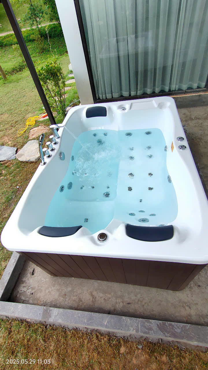 – Máy bơm, bộ họng sục massage, bộ tuần hoàn nước, sen cầm tay, vòi xả nước, gối đầu…